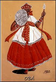 Motivo pelo qual, quando Obá se manifesta em alguma das suas iniciadas, leva a mão para cobrir a orelha esquerda, ou ata-se um torço (turbante), a fim de esconder uma das orelhas. Sua cor é vermelha. Sua saudação: Oba sire (Obá xirê).
